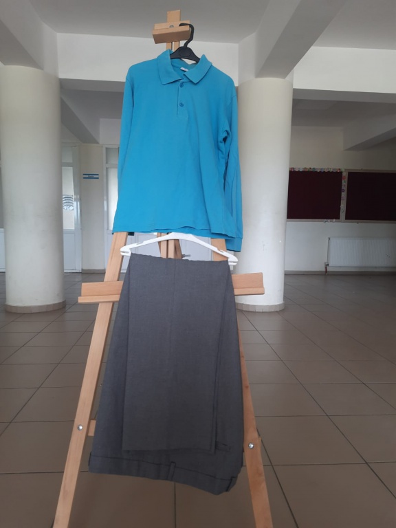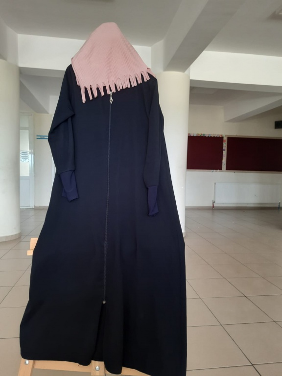 ERKEKLER İÇİN: Turkuaz Lakos / Gri Pantolon KIZLAR İÇİN: Lacivert Fermuarlı Ferace / Pudra Rengi Başörtüsü, Şal